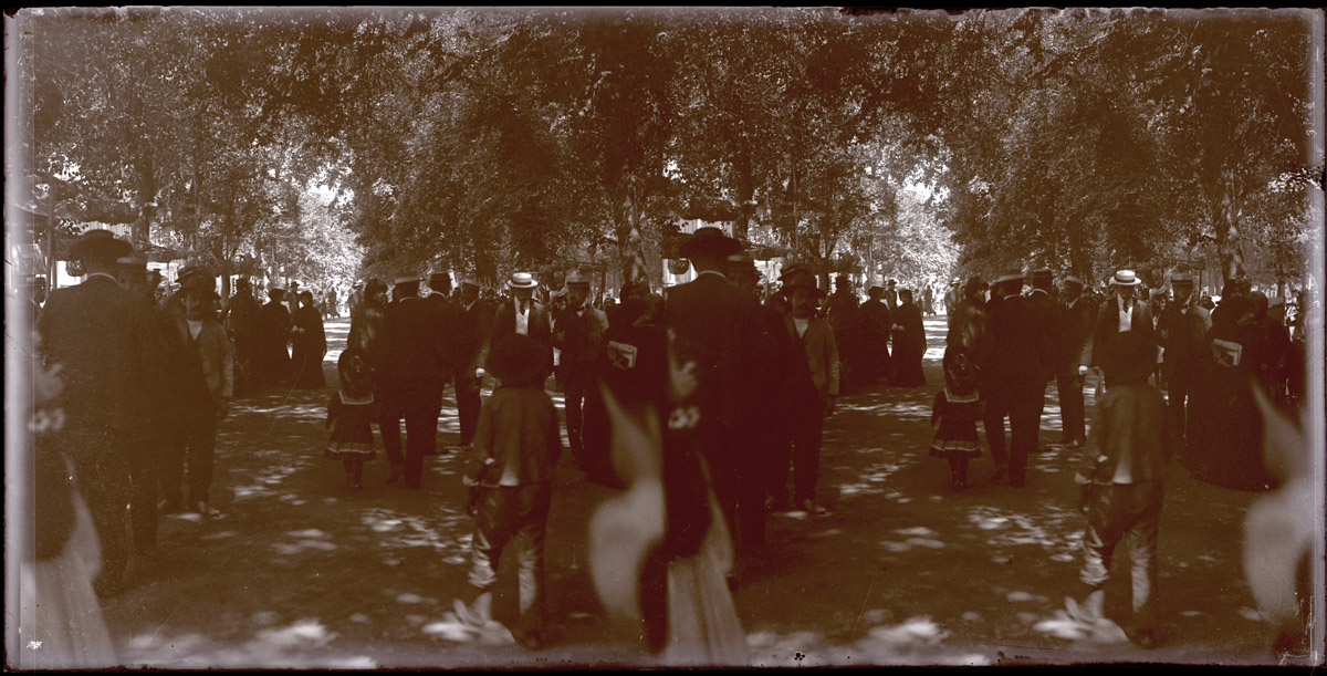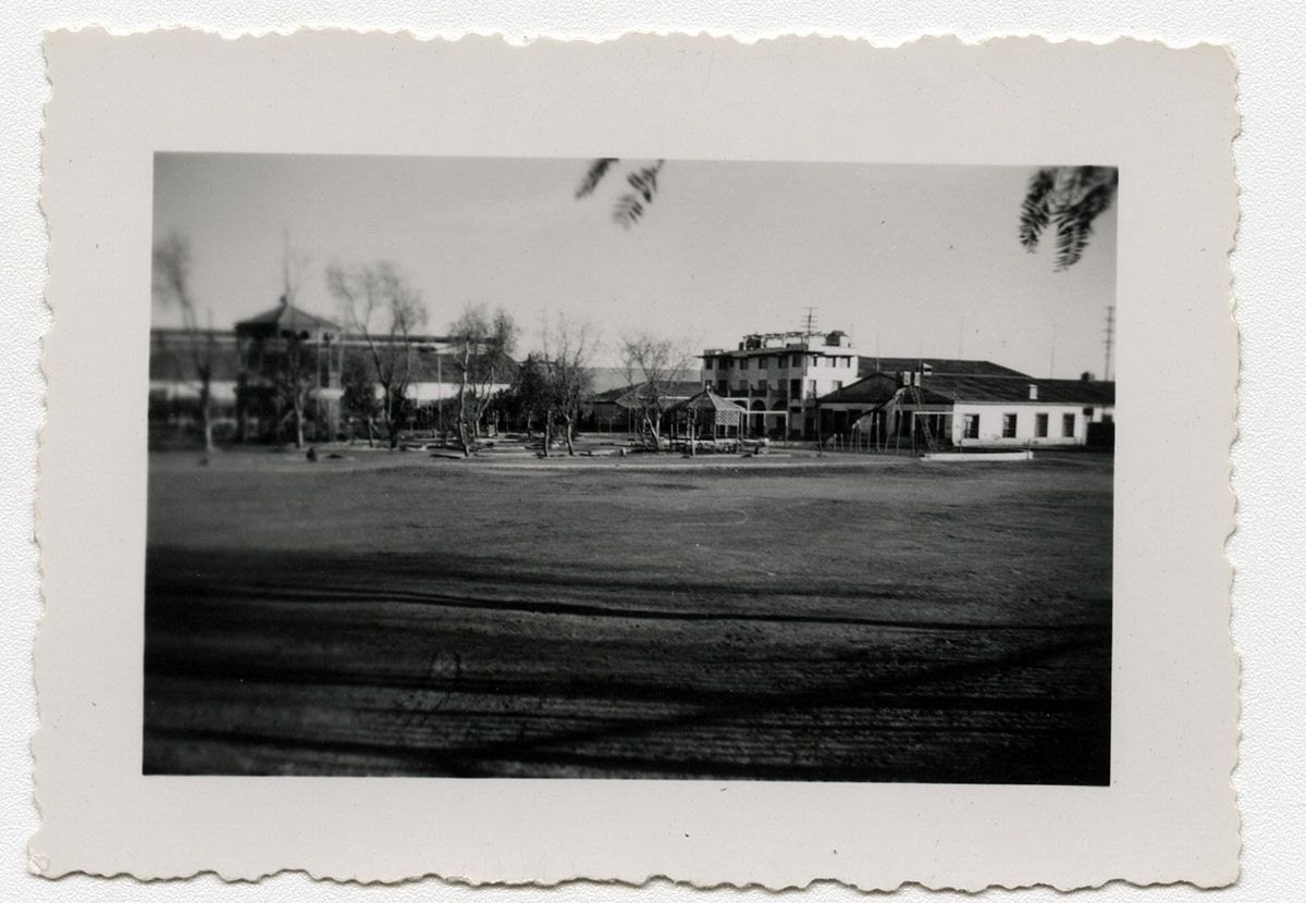 Retrato de un niño con pantalón corto y chaqueta. Se encuentra de pie en el patio de una casa con plantas en maceteros de madera detrás. En el suelo se ven cerámicas.