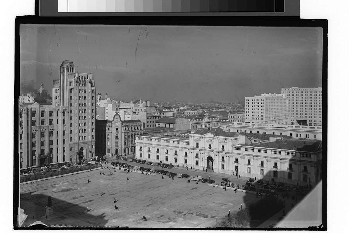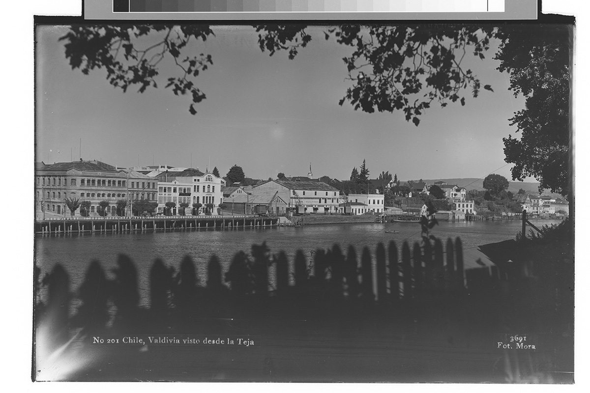 Retrato de una mujer con dos niños que se encuentran sentados a una mesa tomando una bebida en una terraza abierto. A las mesas al lado se ven más gente sentada y un mesero sirviendo. De fondo, colgada a un pilar se ve una bandera chilena.