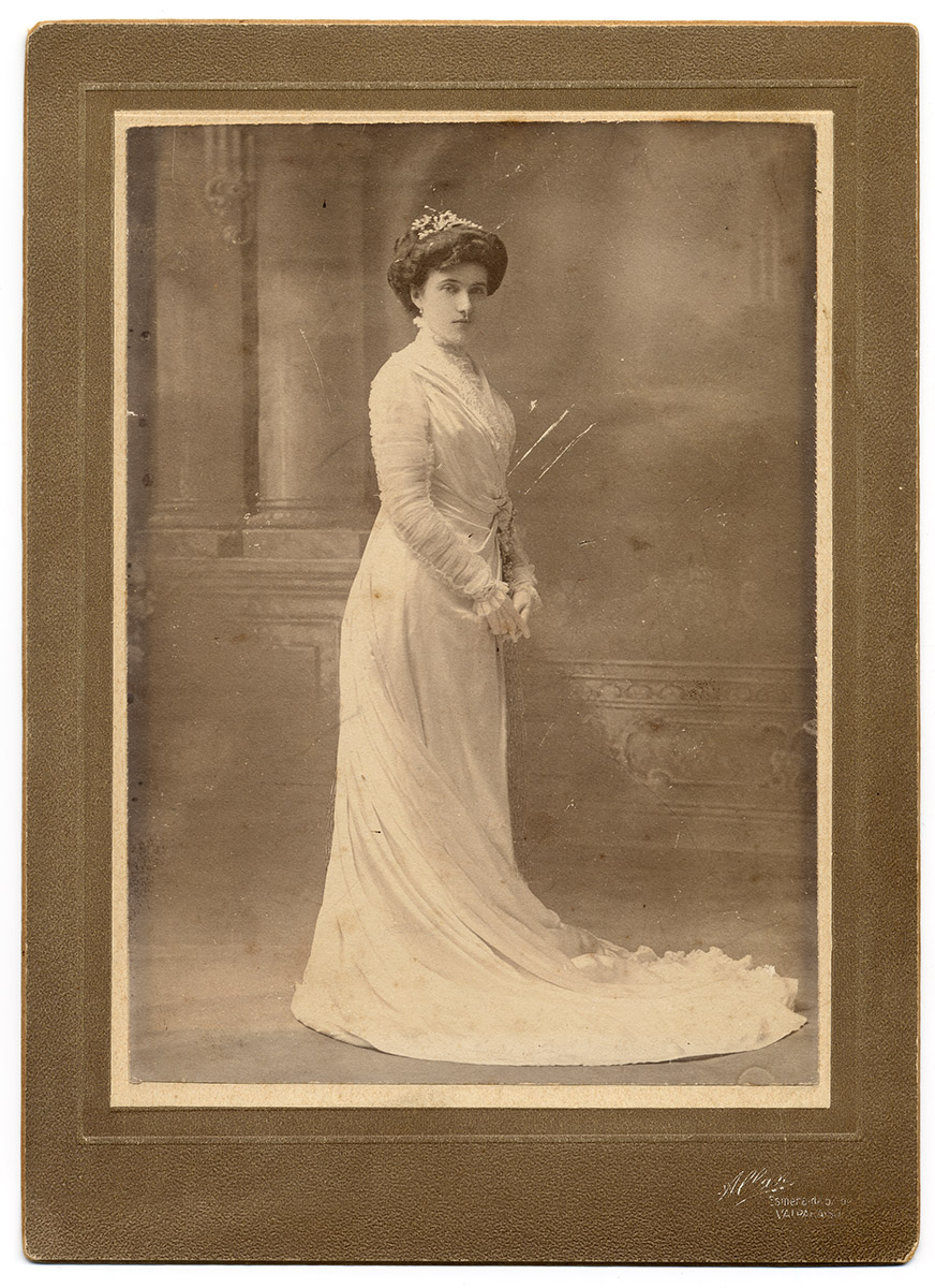 Retrato de una bebé con chaleco blanco sentada sobre un cojín.