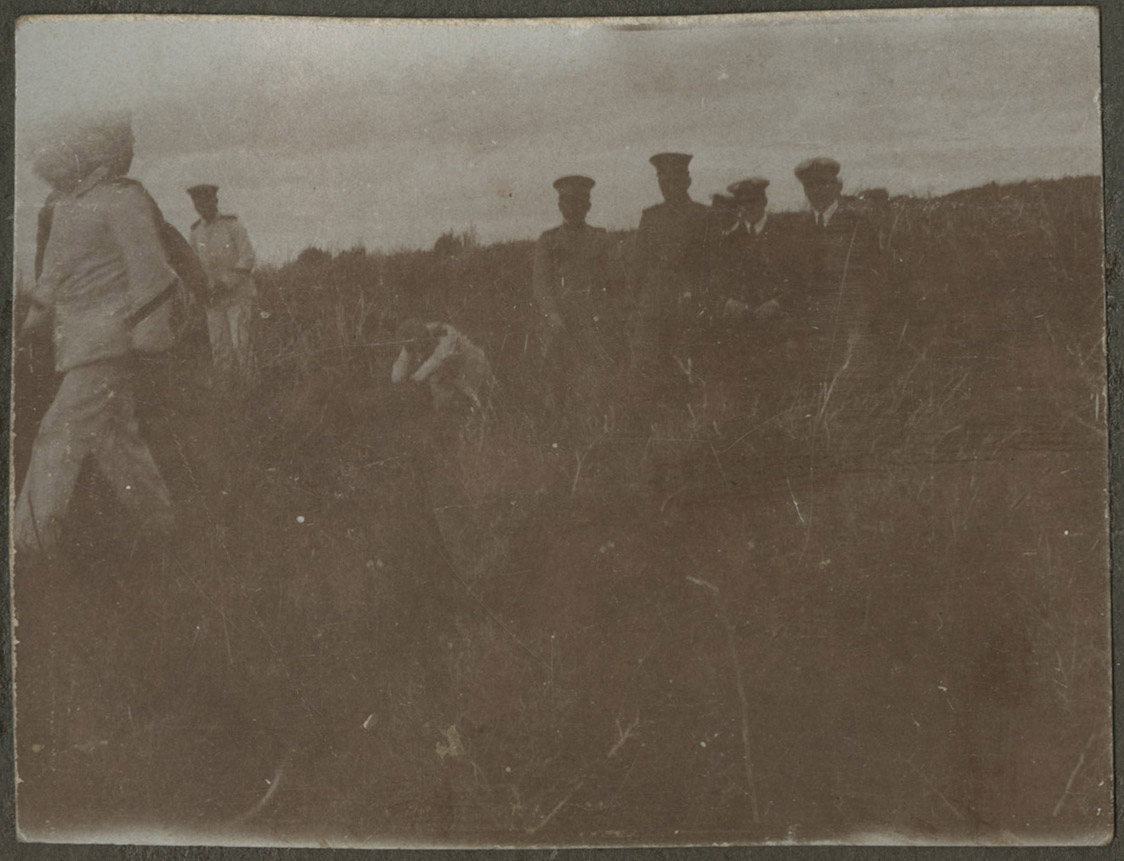 Retrato de busto de un hombre con bigote y abrigo negro. Está sentado y apoya su cabeza sobre su mano.