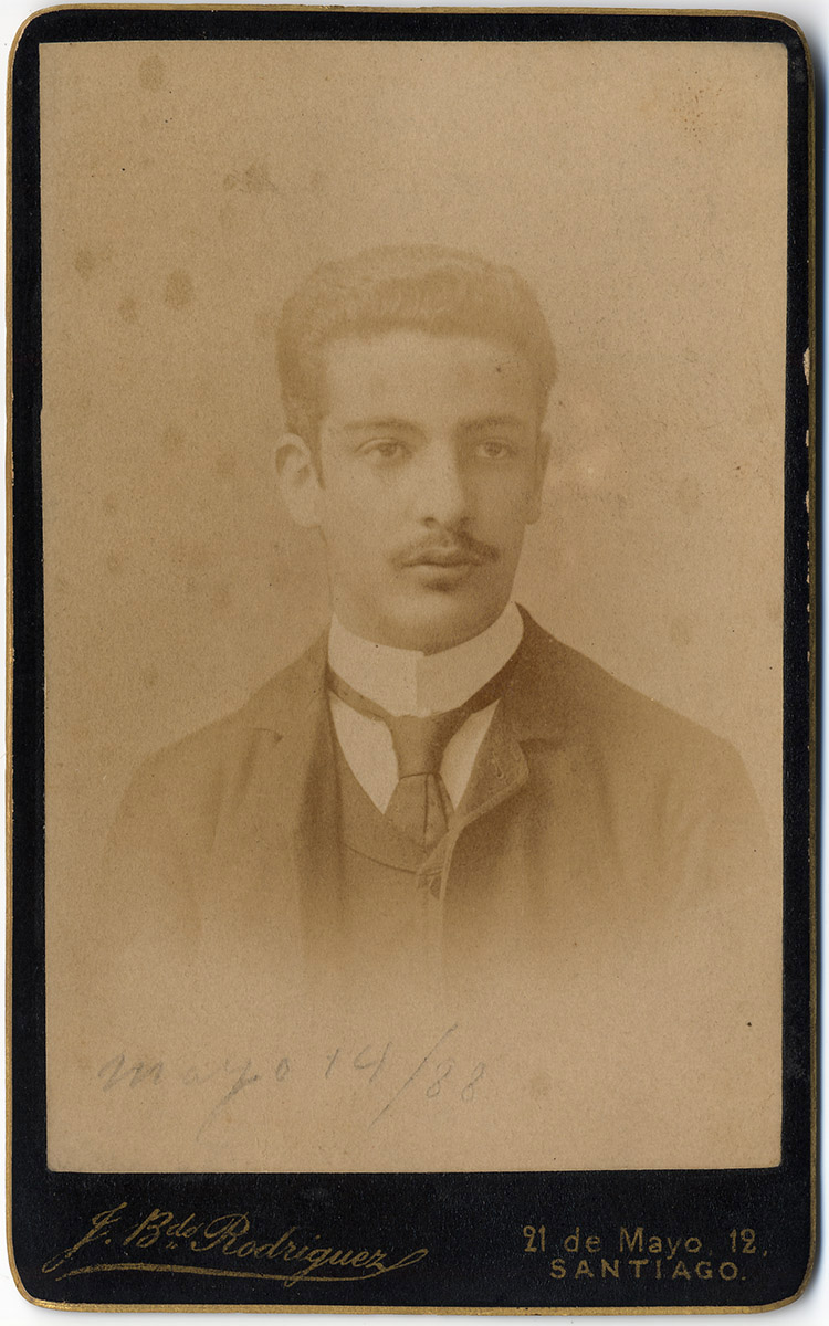 Retrato de busto de un hombre con terno negro. Está medio calvo.