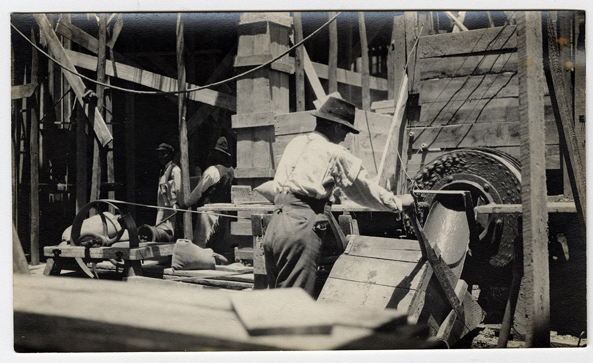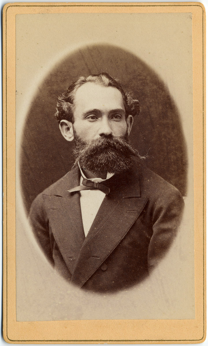 Retrato en primer plano de un hombre con bigote fino. Mira hacia la derecha.