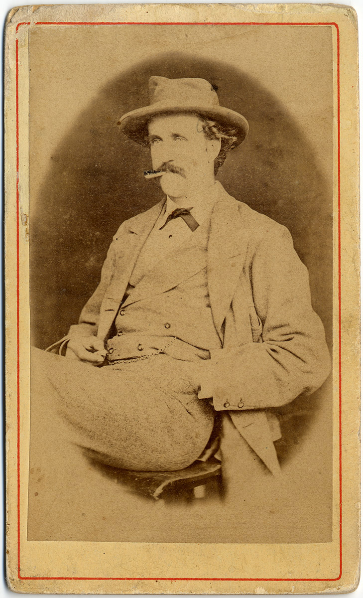 Retrato de un hombre con bigote y terno negra con camisa blanca. Está sentado, apoyando su brazo sobre el respaldo del sillón.