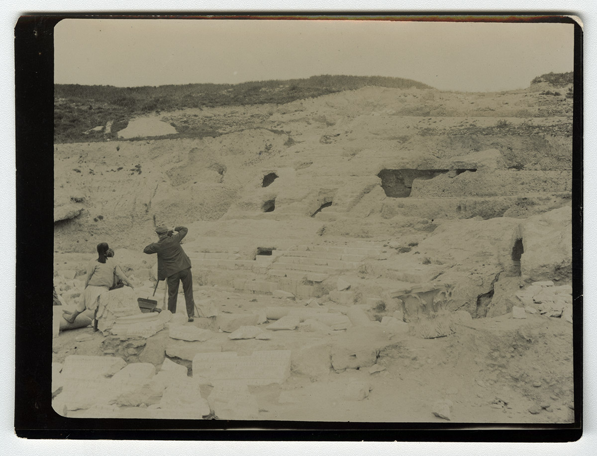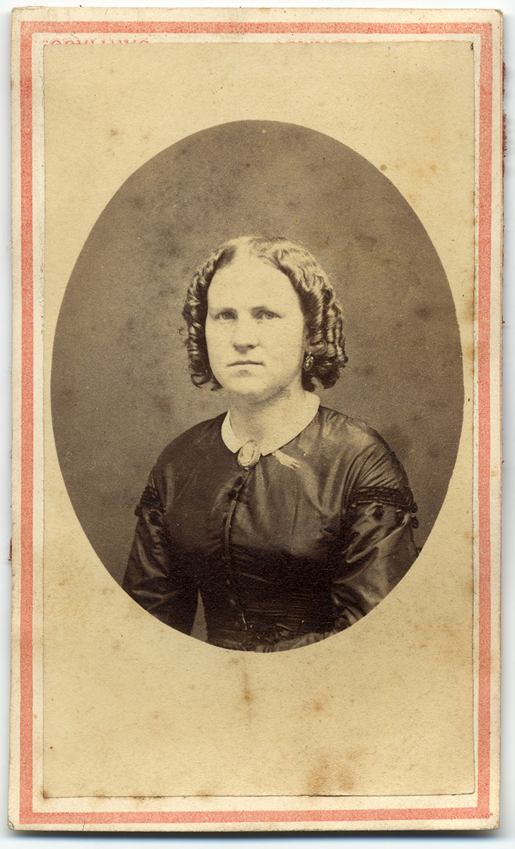 Retrato de una mujer con cabeza levemente girada hacia la derecha y su mirada siguiendo la misma dirección. Está sonriendo con la boca abierta descubriendo sus dientes.