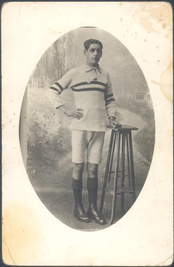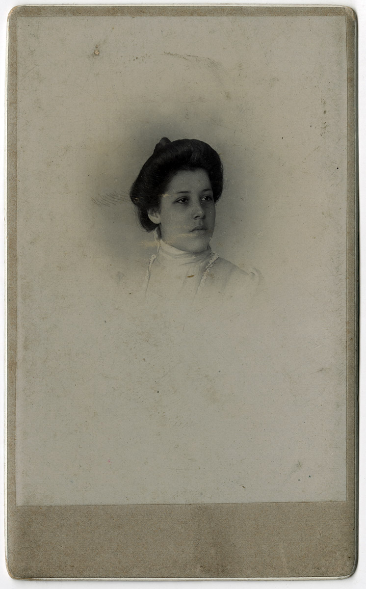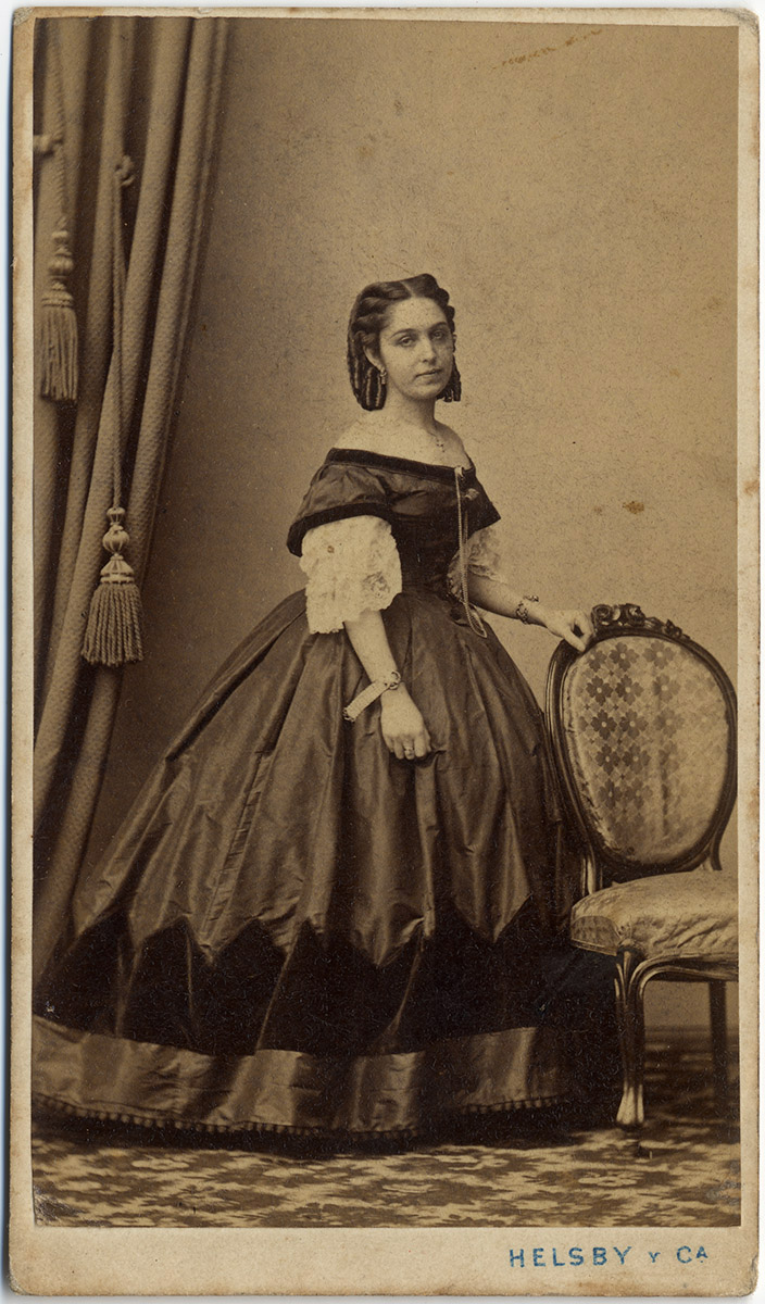 Retrato de forma ovalada de un hombre con barba y bigote. Viste un abrigo negro cerrado.