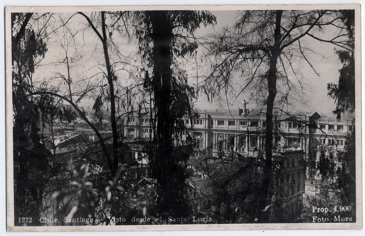 Retrato de una joven con vestido a cuadros y con el pelo suelto. Tiene la manos cruzadas delante ella.