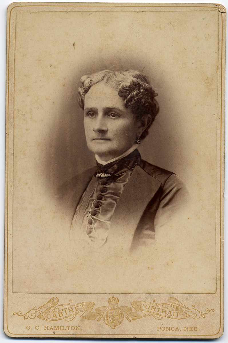 Retrato de una novia sentada con vestido blanco y velo bordado con flores extendido sobre el suelo. Su vestido tiene un capucha. Lleva en sus manos un ramo de flores.