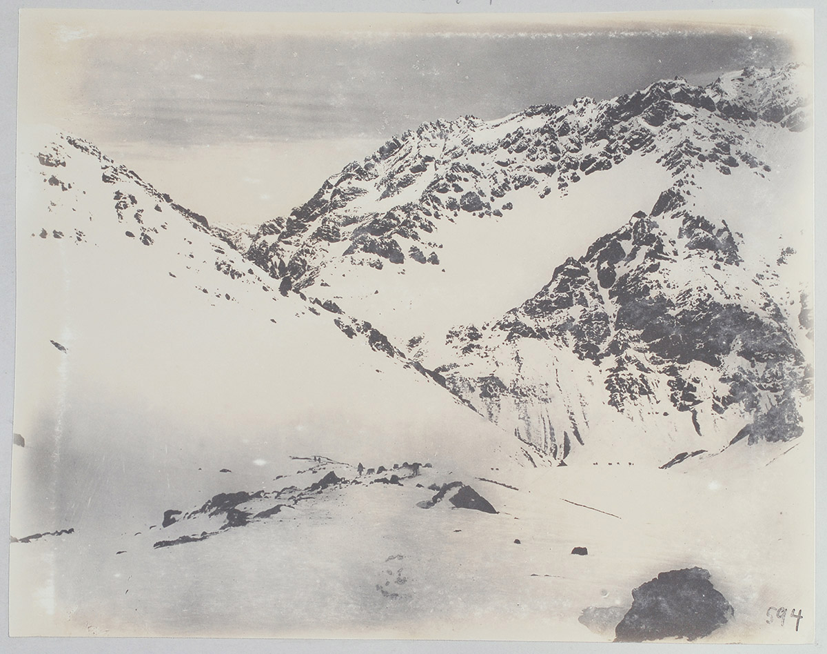 Vista desde la altura hacia un complejo de construcciones protegidos por cerros.
