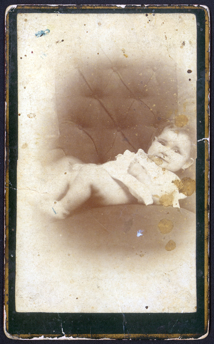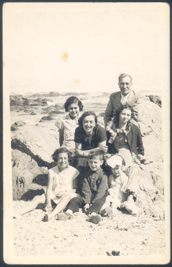 Grupo familiar de siete personas que están recostadas en el césped al estilo de un “día de campo”.